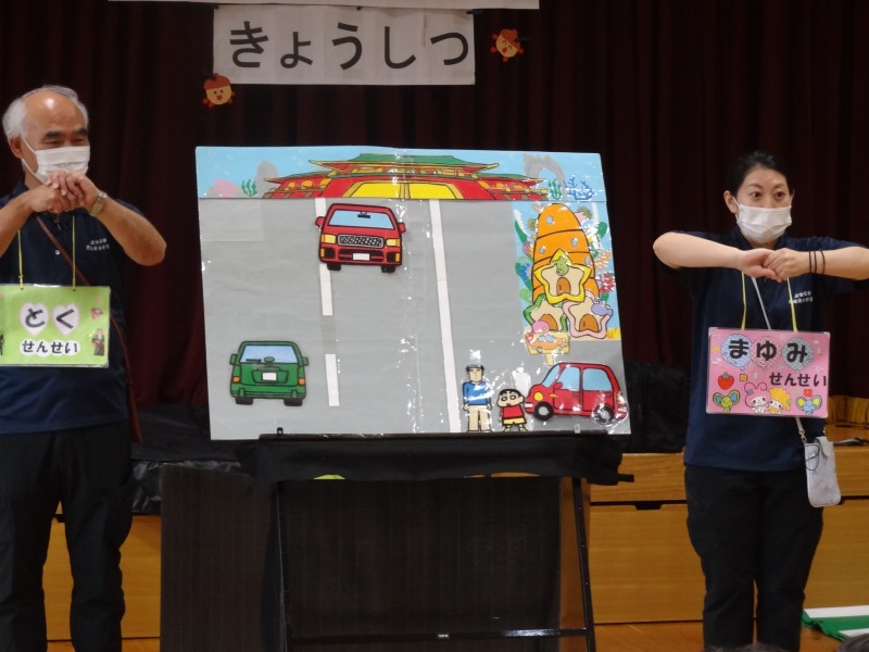 車の中でのルールや道路の歩き方などを教えていただきました。
