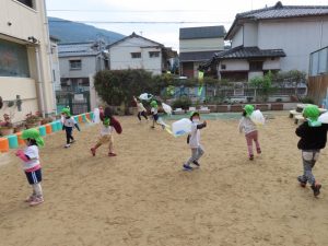 凧あげに、こま回し、羽根(風船)つきなど各クラスいろいろなお正月遊びを楽しみました。