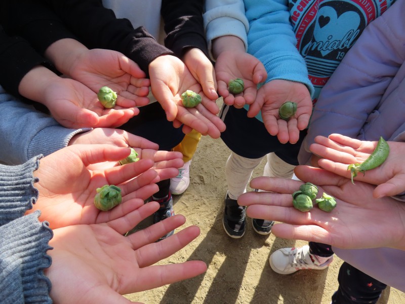 今回は芽キャベツとスナップエンドウを収穫しました。