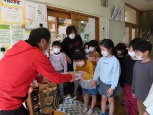 給食に入れてもらい、みんなで少しずつ味わいました。