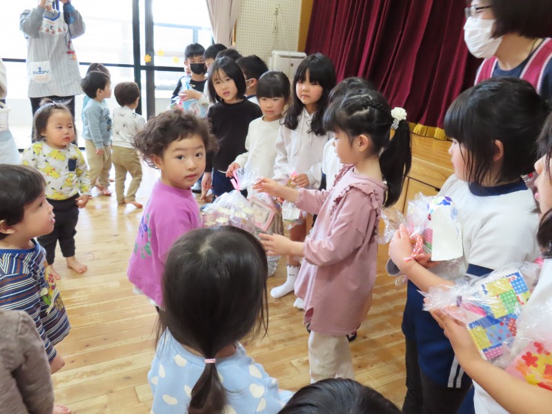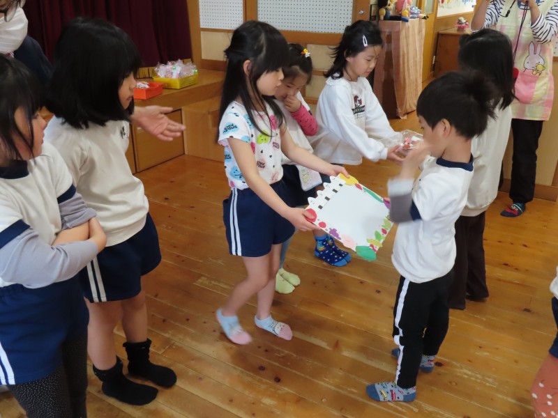 年長児からは卒園記念のプレゼントを各クラスもらいました。