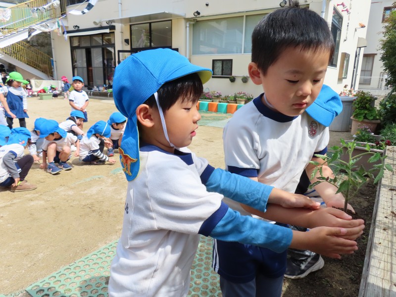 大きくなるといいね~。みんなで収穫できる日がとっても楽しみです。