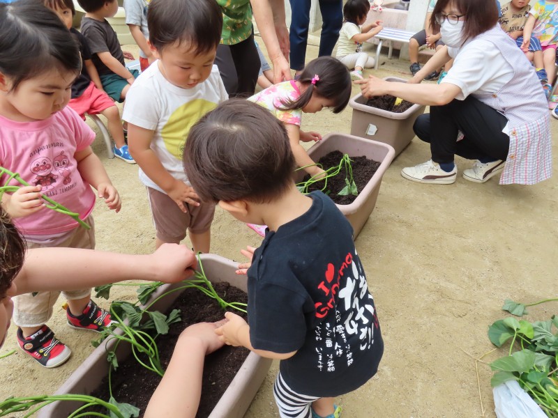 みんなで植えた苗、秋には大きなお芋になるといいな~