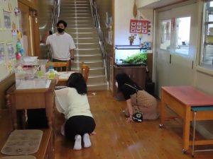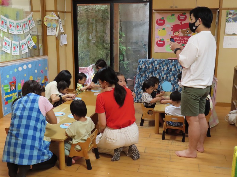 小さいクラスの子どもたちは先生を見てドキドキ!