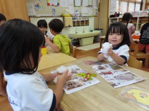 お店屋さんごっこの準備もみんなで力を合わせています。