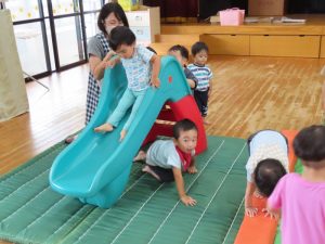 滑り台の下も子どもたちにとっては楽しい空間です!