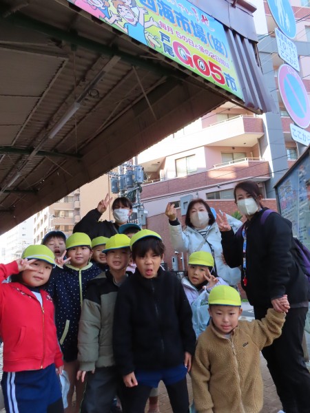 年長さんが戸尾市場までお正月の準備の買い物に行きました。