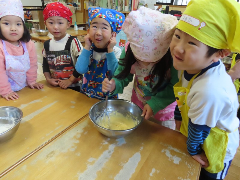 ハンドミキサーや泡立て器で協力してまぜまぜ…。