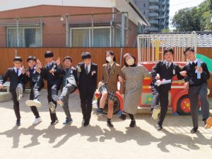 式が終わると0~2歳児さんも園庭に出てお見送りをしましたよ。