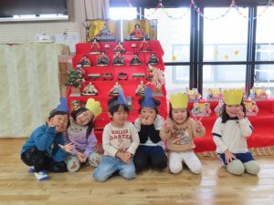 今月はみんなお内裏さまやお雛さまになって誕生会に参加しました。