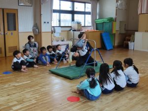 年長さんは鉄棒や跳び箱にも挑戦してきました。