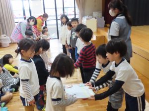 ひなまつりにちなんだいろいろなクイズにみんなはりきって手を挙げていましたよ。