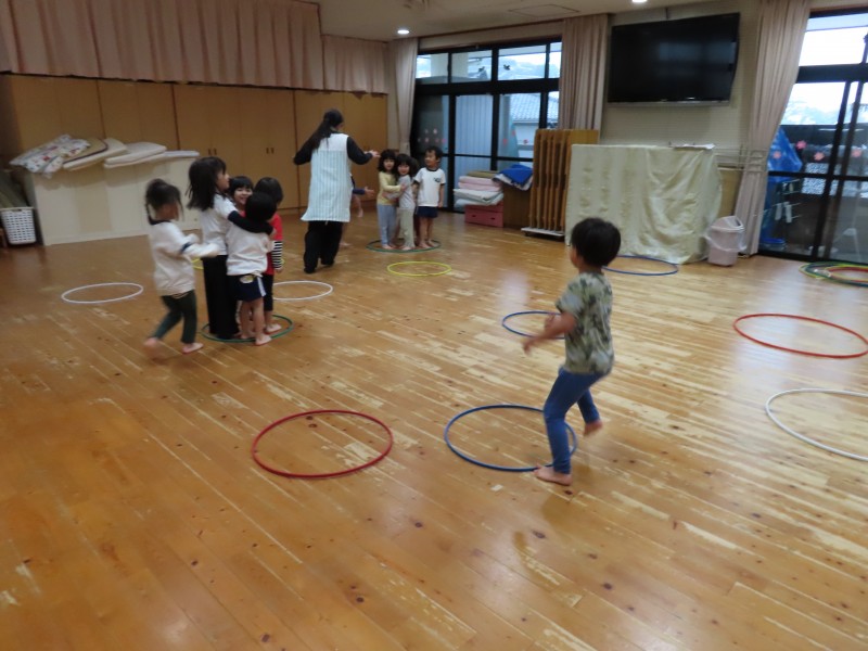 あいにくの雨模様となり、急きょ園内遠足となりました。