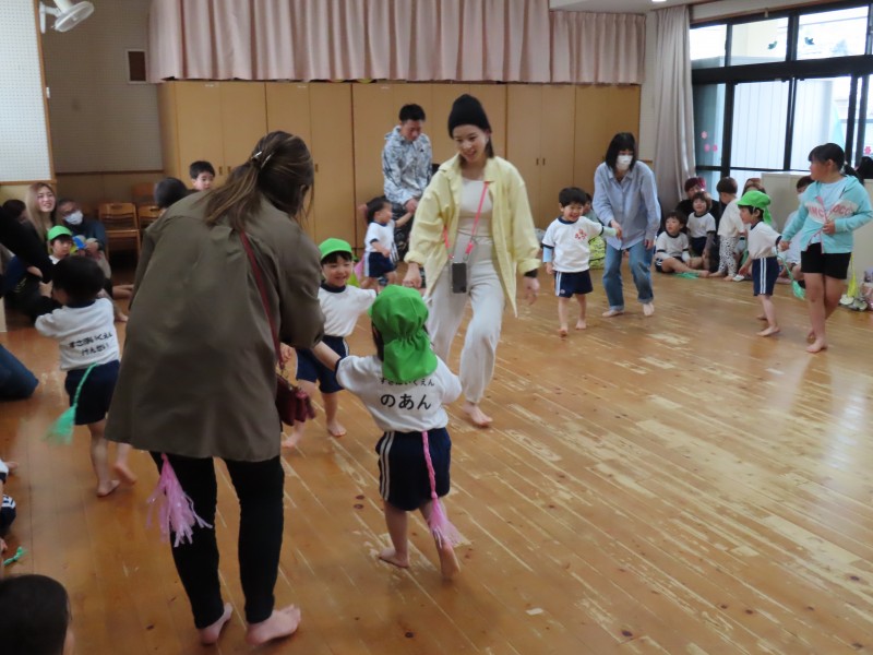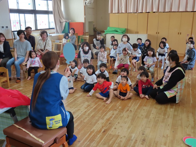 まずは年長児からのなつかしい須佐保育園の歌と質問コーナー。
