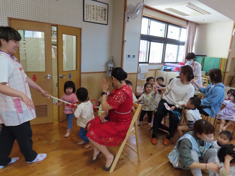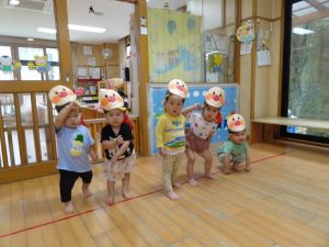 各クラスの出し物はお返事は~い!や、歌、お散歩ごっこに運動遊びでした。