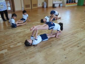 年長児は運動会に向けて組体操に挑戦です。