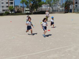 かけっこ、遊戯、リレーや紅白対抗のボール運びなど広い運動場で思いきり