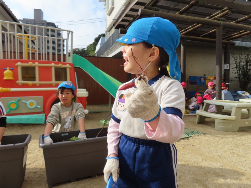 出てきたお芋に何だろう???って表情だったり、にっこり~だったり…!