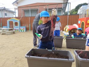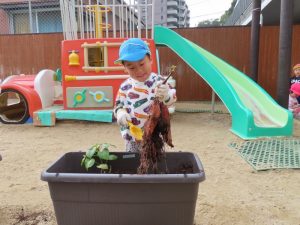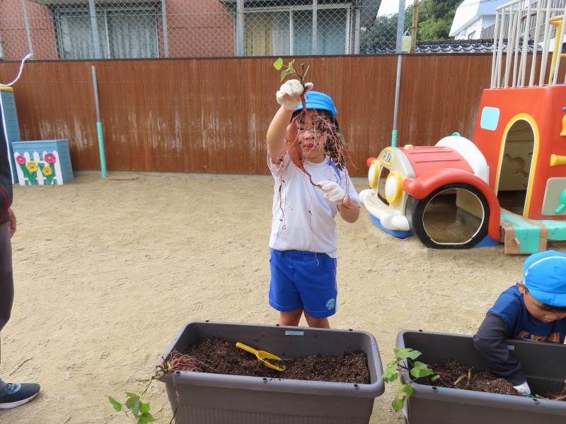 来年はもっと太陽のパワーが降り注ぐところで大きなお芋にチャレンジしようね!