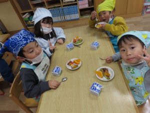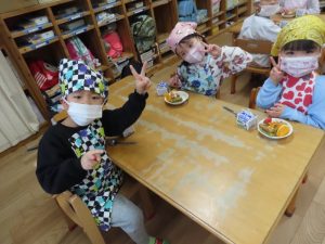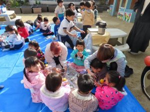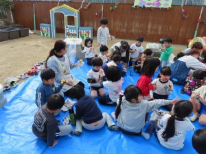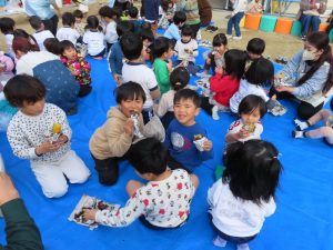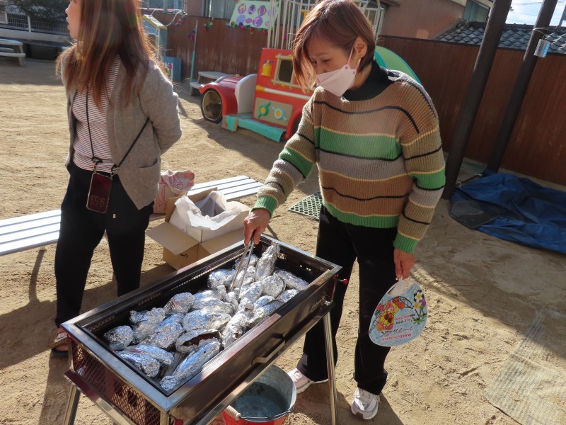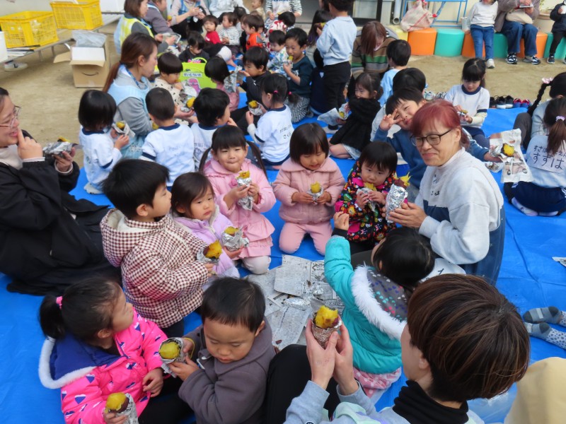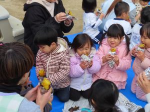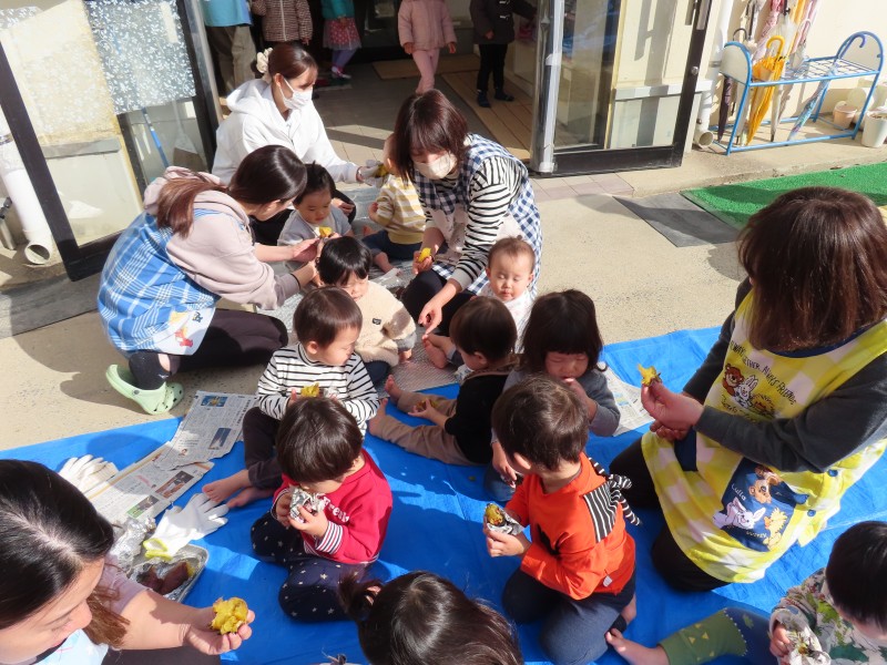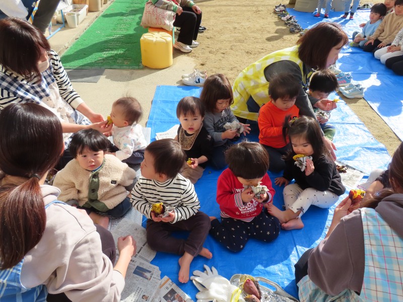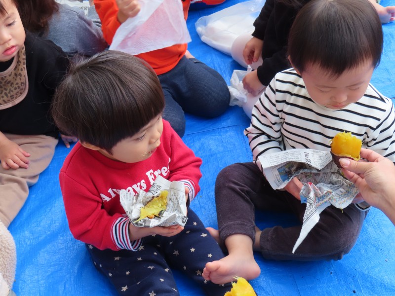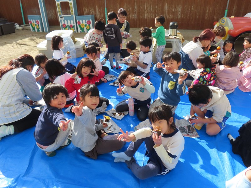 アツアツ、ホクホクの焼き芋をおいしそうにパクっ!と…みんな大喜びでした♪