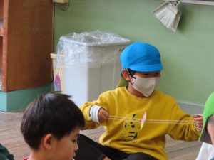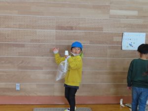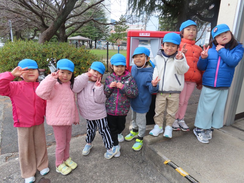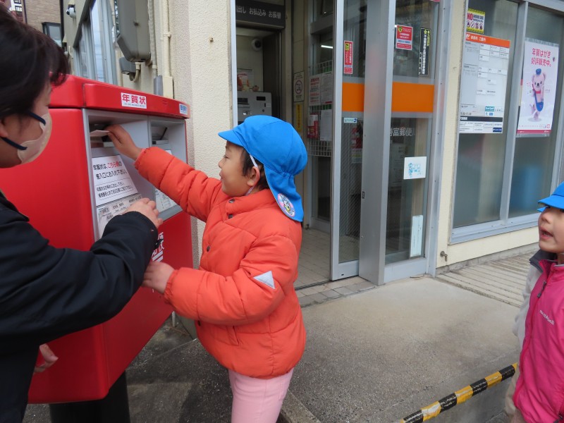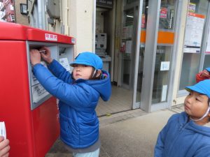 年長さんが年賀状を投函しに勝富郵便局まで行きました。