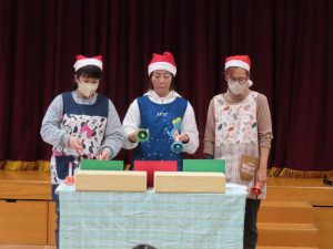今回は保育士3人で「赤鼻のトナカイ」をハンドベルで演奏しました🎵