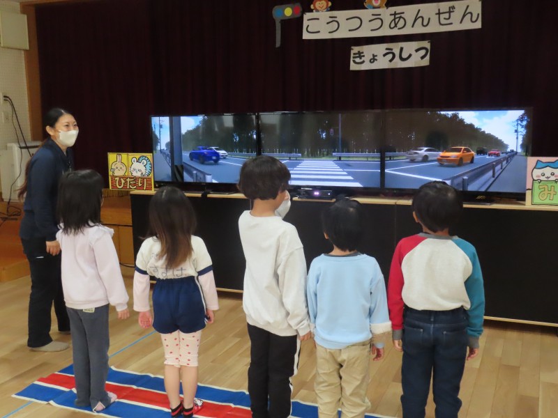 さくら組はシュミレータで横断歩道の渡り方を体験しましたよ!