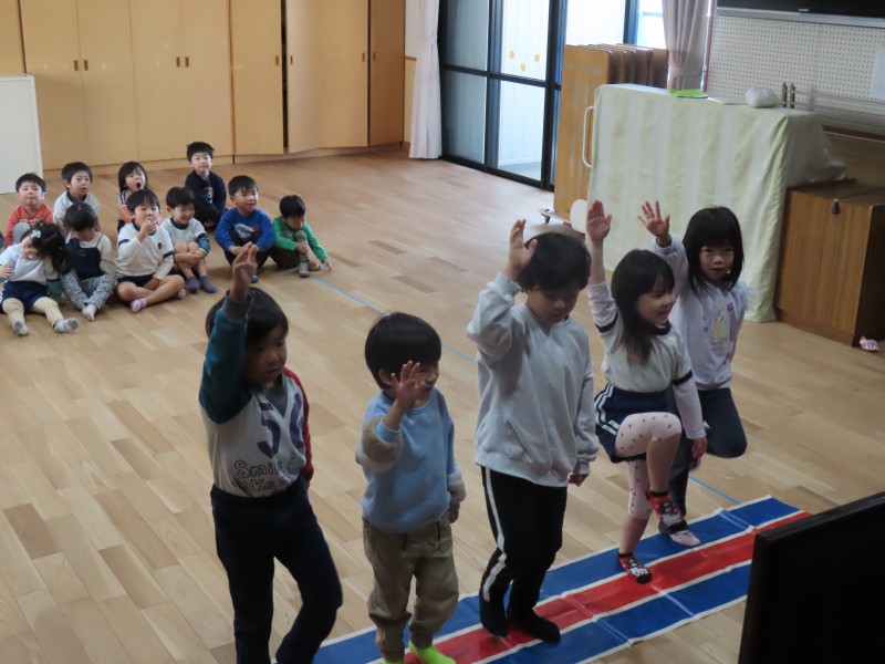 今年度、最後はなのはな組、もも組、さくら組が参加して交通ルールを