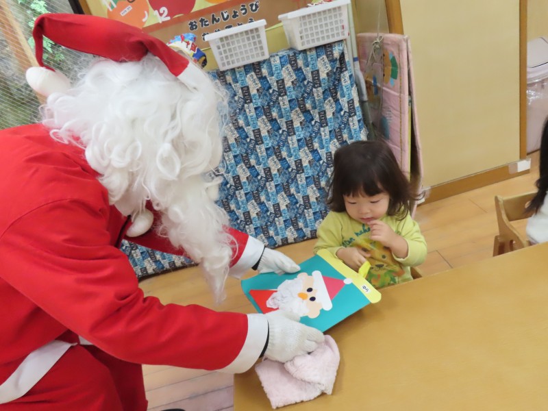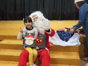 受け取っていましたよ。サンタさんとハグしたり、写真を一緒に撮ったりしました。