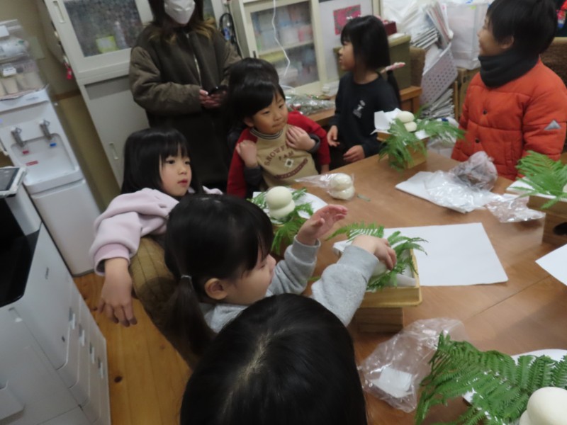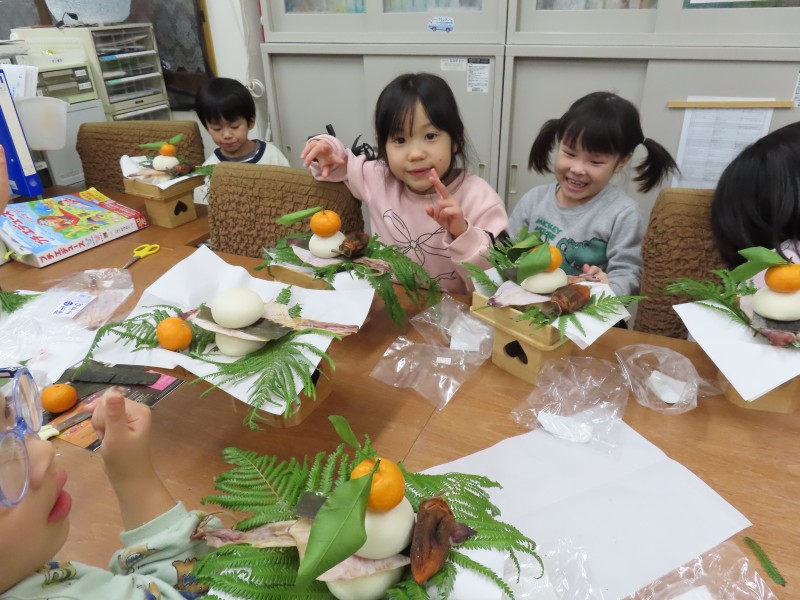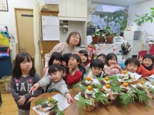 うらじろ、お餅、するめにこんぶ、小みかんをのせました。