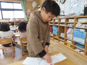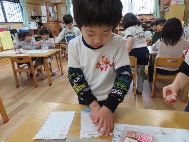 さくら組はスタンプ押しのお仕事。