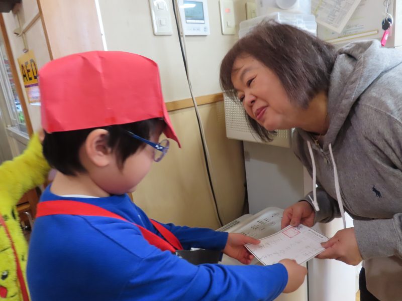 ゆうびん屋さんに名前を呼ばれたおともだちはちょっぴりドキドキ!