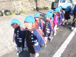 防火のあいことばをいう代表のお友だちの中に卒園児さんを発見!!