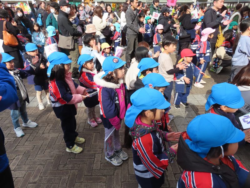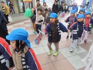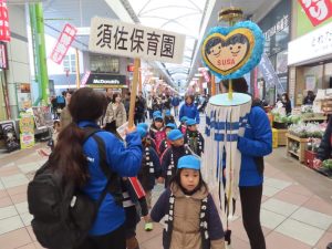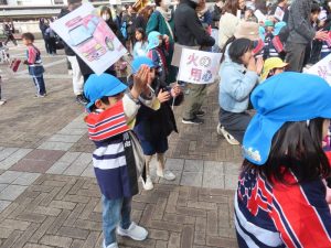 さぁ~元気に旗を振って歩きます!