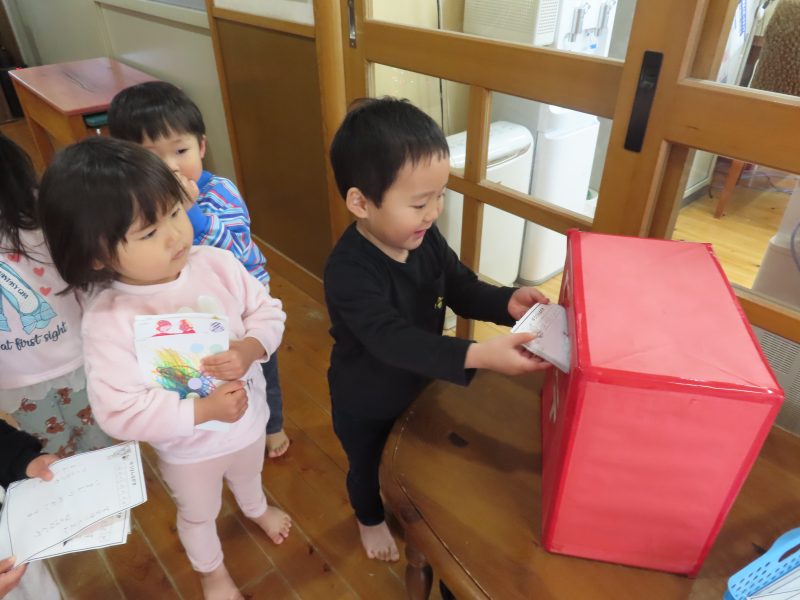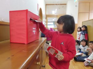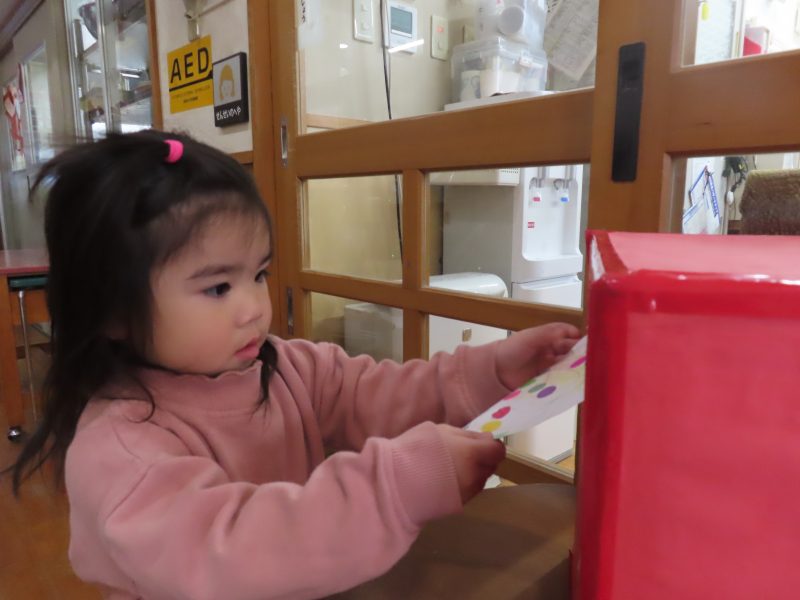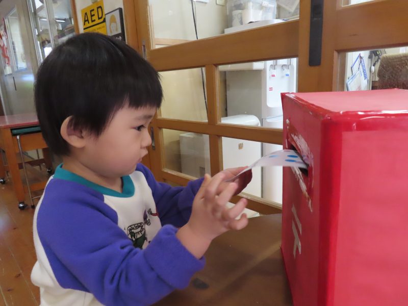 各クラス、年賀状を嬉しそうにポストへ投函です!