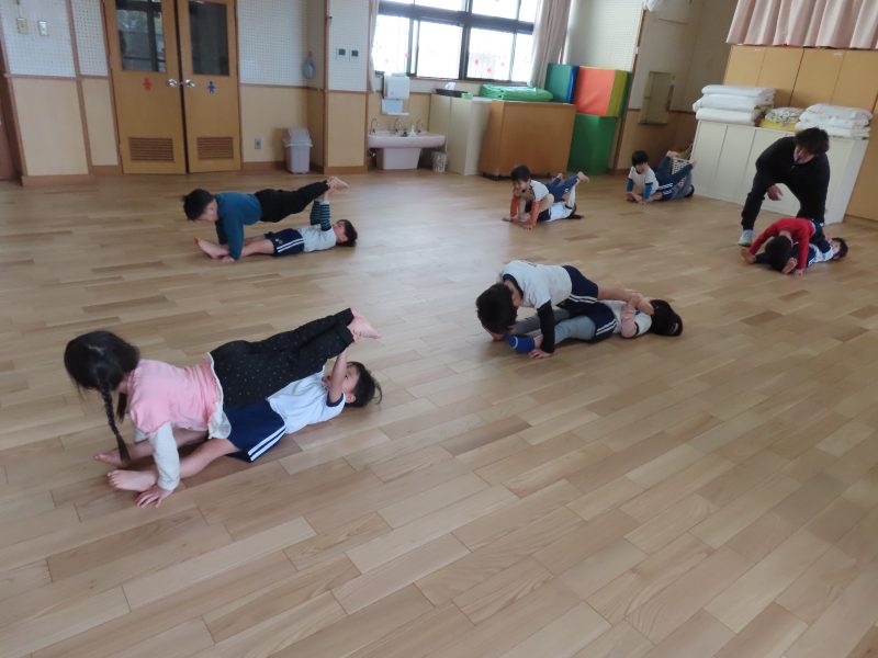 年中さんは来年度の運動会に向けて組体操に挑戦中~。