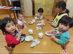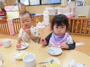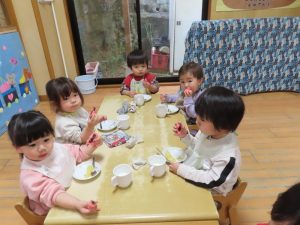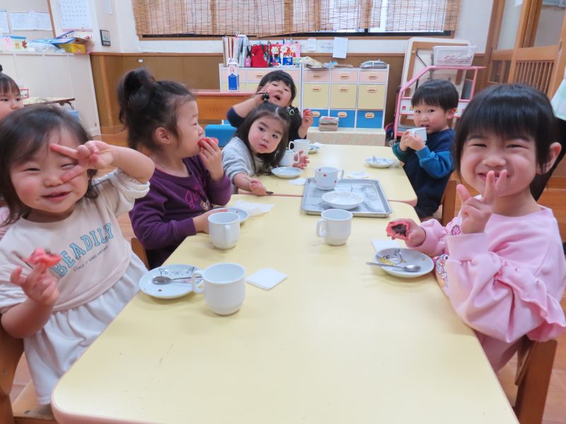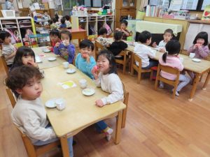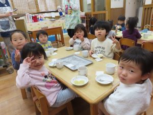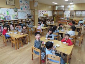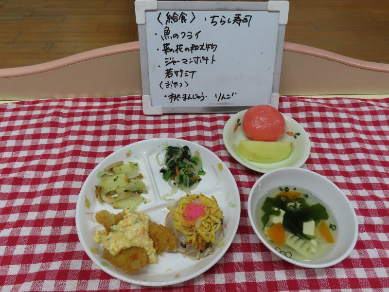 給食とおやつはひなまつりメニューでしたよ。
