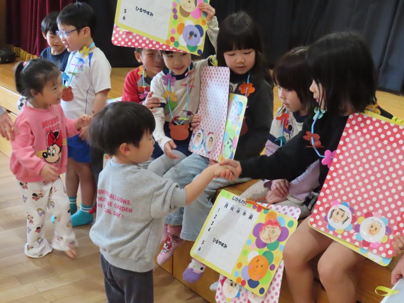 保育士からのプレゼントはひなまつりクイズでした。