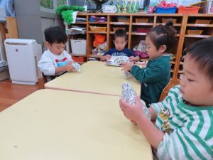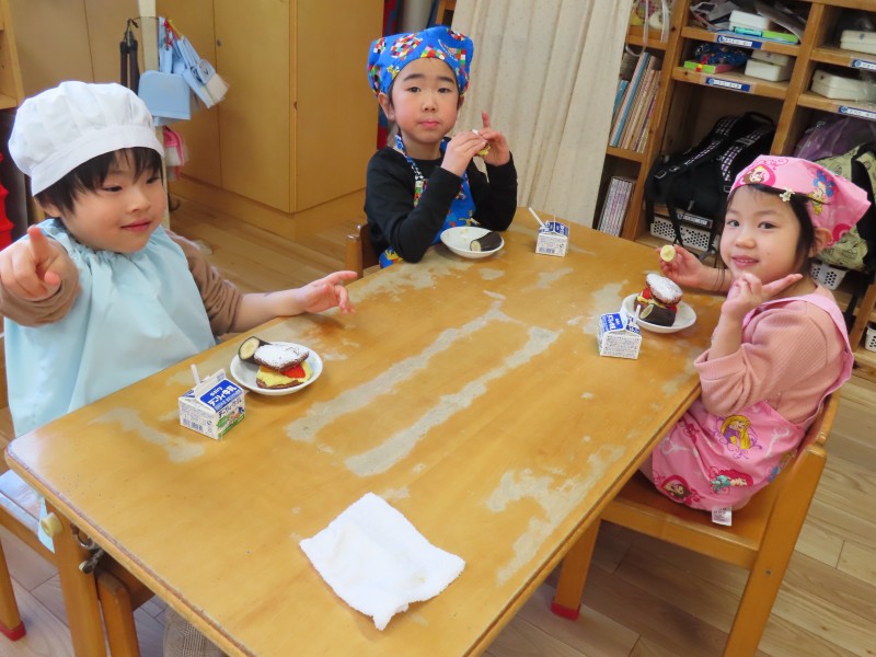 はやくお店屋さんになりた~いとはりきって作っていますよ。