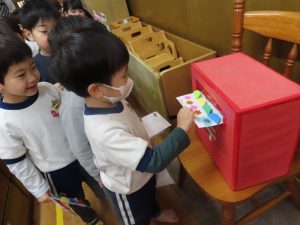 ※10/1午後、年長児は赤い羽根共同募金の街頭募金活動を