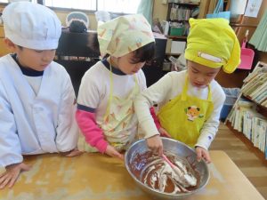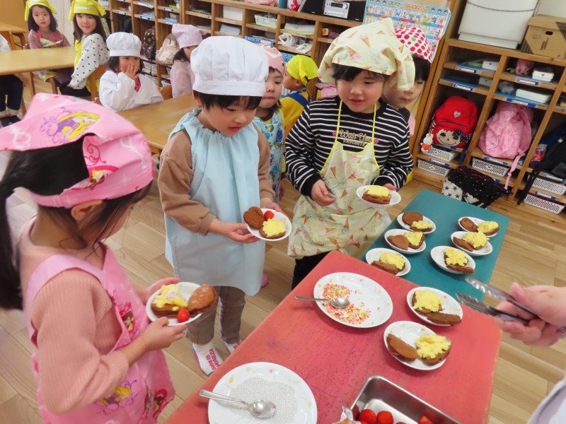 保育士からのプレゼントはスケッチブックシアター「おいしいケーキづくり」でした。