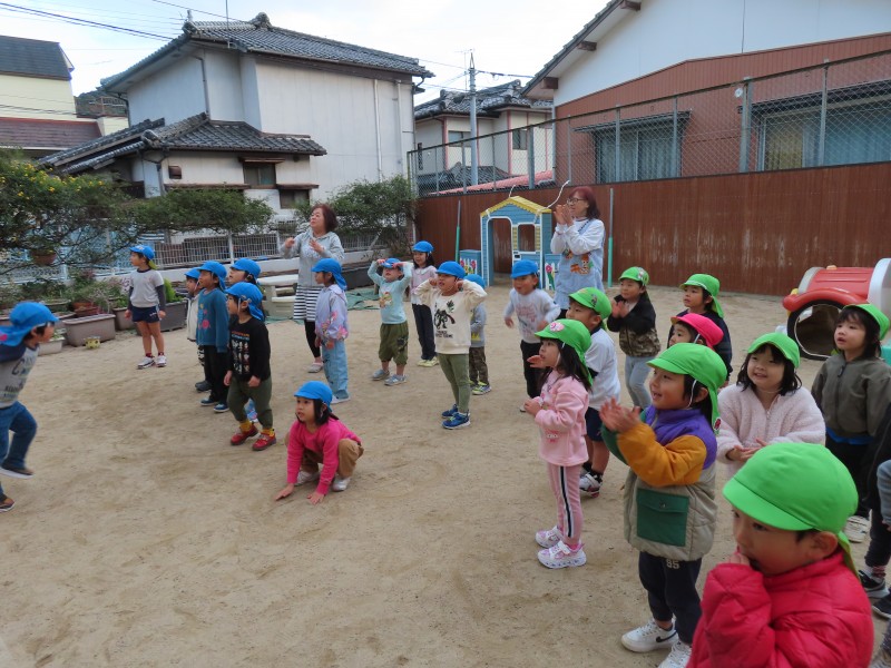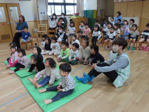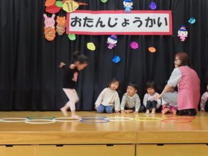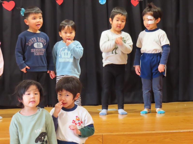各クラスの出し物は手遊びや運動遊び、歌などでした。
