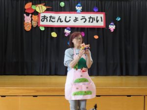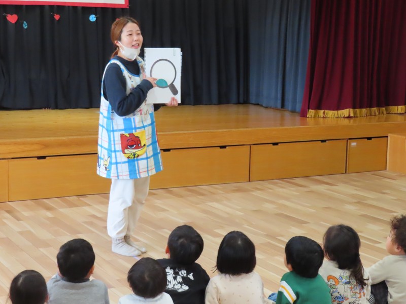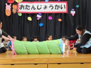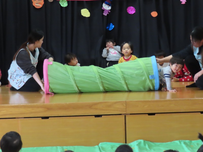 保育士からのプレゼントは「へんしんトンネル」のお話でした。