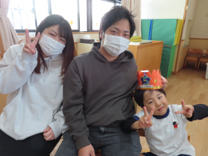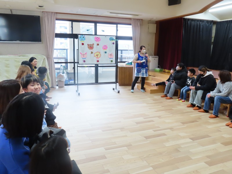 保育士からのプレゼントはエプロンシアター「3匹のこぶた」のお話でしたよ。