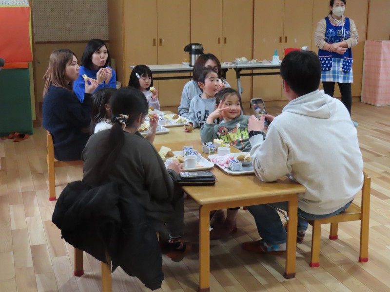 ここでおやつタイム~♪みんな大喜びでお菓子を食べたり、