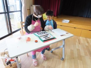 卒園児さんが夏休みの作品展で賞を取って見せに来てくれました。