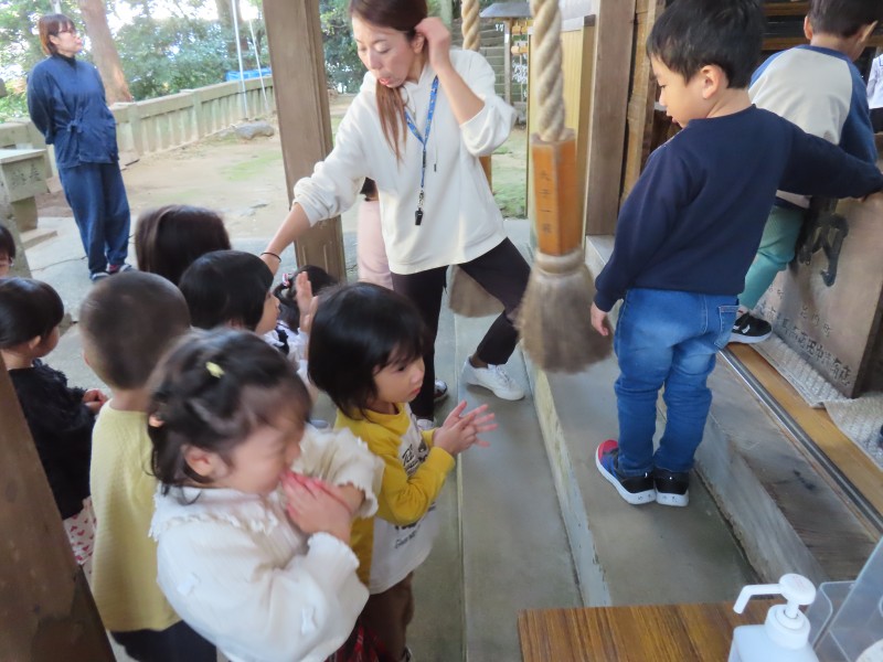 まずはお賽銭を入れて一人ひとり手を合わせます。