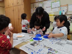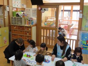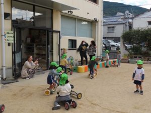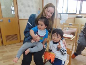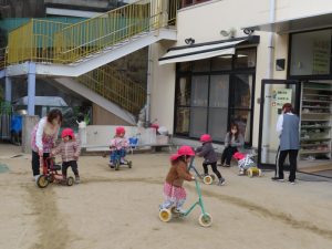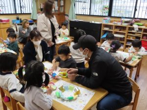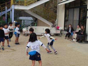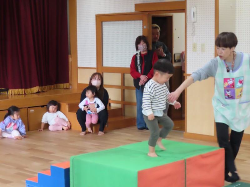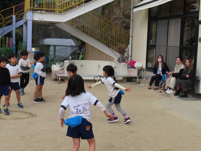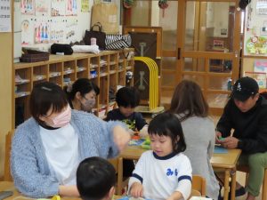 戸外遊びや室内遊びなど一緒に遊んだり、保育園での様子を見ていただきました。