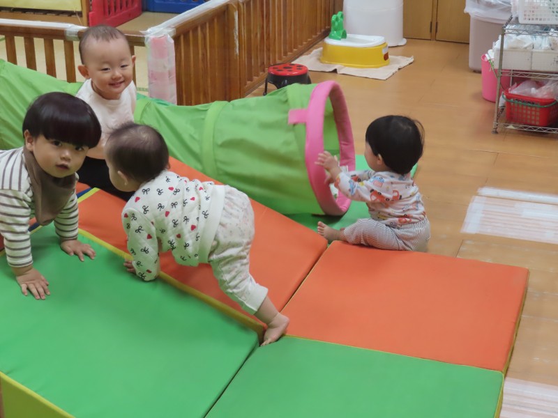 各クラスからの出し物はトンネルくぐりやグーパー跳び、