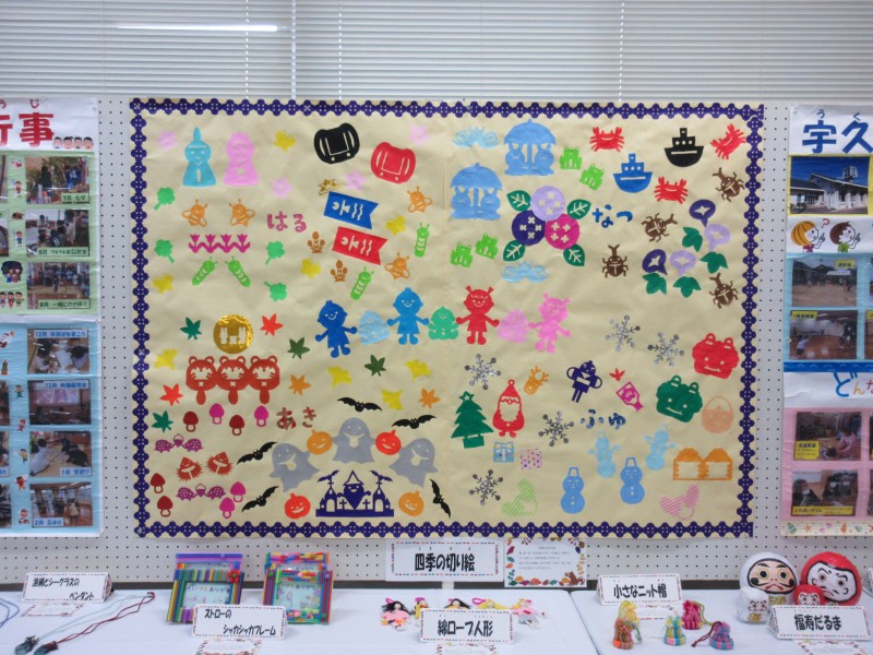 「四季の切り絵」は、ただいま宇久児童センター内に掲示しています。